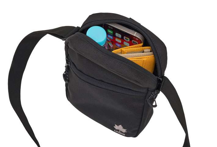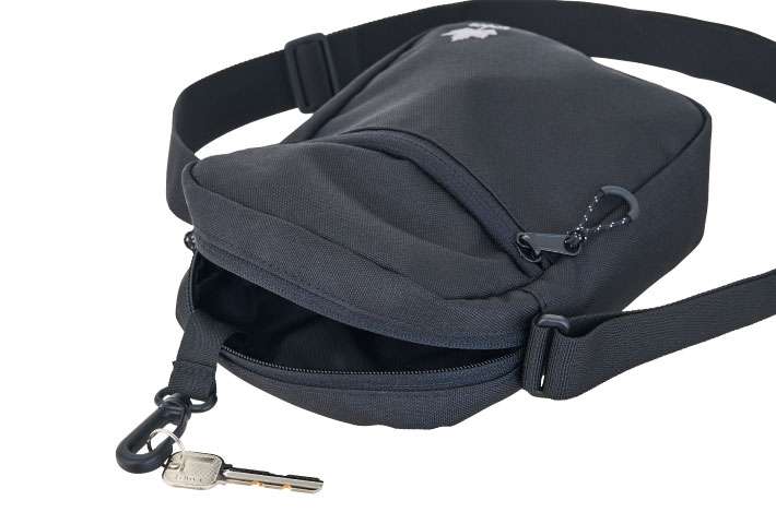A sacoche with excellent storage capacity that can hold two 500ml PET bottles, allowing you to move around light without increasing your luggage.